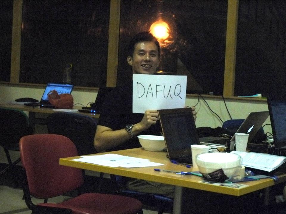 The winning team, Team Semantics 2, was a group of 2 students who built a UAV in 24 hours. They used the Justin.tv api, found that the screenshots API did not work, rejected a Flash-based approach and wrote a Selenium script to take screenshots of an open browser in their Linux computer. They then cropped the image programmatically. After which, they uploaded those screenshots via Dropbox to submit to face.com for face detection (this was after realizing that face.com needed a hosted image). Lastly, their plane crashed multiple times, after which they discovered they had accidentally reversed the polarity of their engine.
