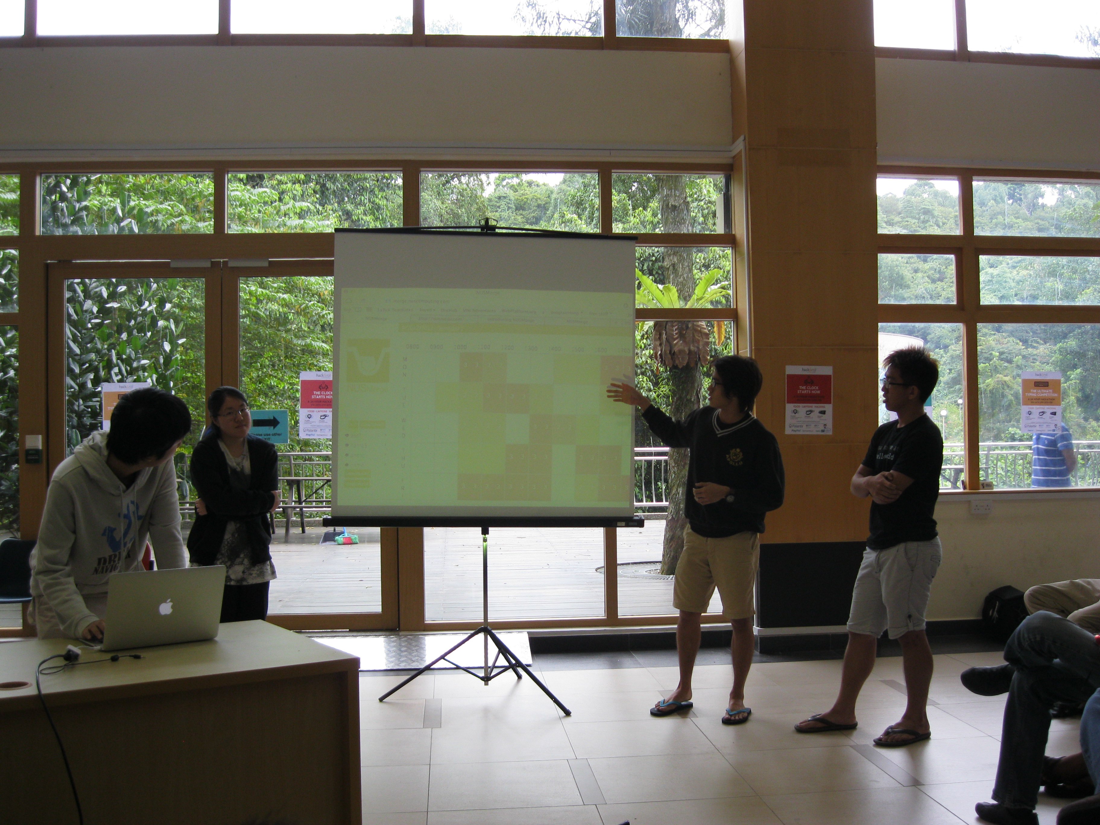 After working through the night (fuelled by a large supply of snacks and drinks), the teams presented their work to each other and the panel of judges: Dinesh and Brian from Palantir Technologies, Professor Lee Wee Sun from NUS SOC, Ruiwen and Luther from Hackerspace SG, and Justin from BlackBerry.